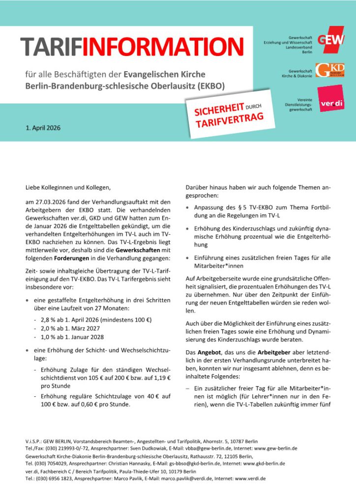 TARIFINFORMATION für alle Beschäftigten der EKBO 31. März 202631. März 2026 Admin One Tarifverhandlungen